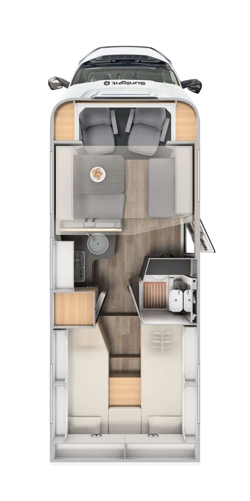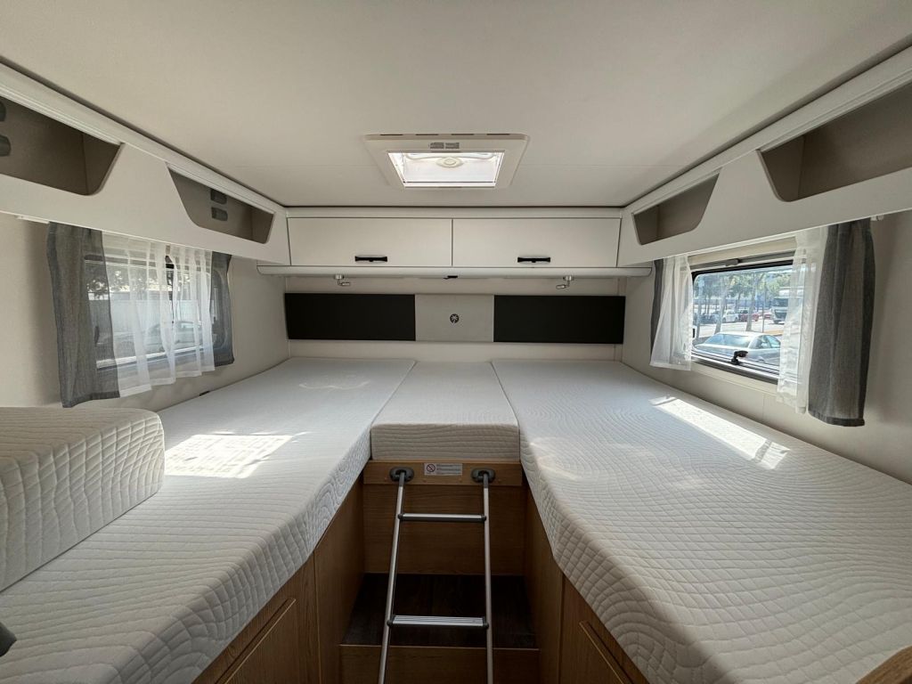 Rádio s USB, ABS, 2x airbag, tempomat, elektrická okna, elektrická vnější zrcátka, klimatizace motorová, velké střešní okno nad řidičem, spouštěcí lůžko, otočná přední sedadla, elektrické schůdky, dveře s roletou proti hmyzu, lednice s odděleným mrazákem, 3-plotýnkový vařič, wc + sprchový kout, markýza, venkovní světlo, držák kol, velká garáž